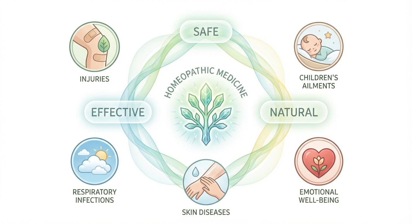 In injuries and accidents, homeopathic treatment can be of immense value. Homeopathy can even help if surgery is necessary. Homeopathic medicines can be given both pre-operatively and post-operatively to speed up healing and to counteract any effects of anxiety, shock and anaesthetics. In general, patients treated with homeopathy make a much more rapid post-operative recovery than patients who have not had this treatment. Homeopathy: an effective treatment Homeopathic treatment is an effective method of healing – in both acute and chronic conditions, as claimed by millions of patients and thousands of homeopathic doctors. It may even offer long lasting to permanent cure, treating the disease from its roots, for most of the ailments. The body of clinical evidence for the effectiveness of homeopathy continues to accumulate. Several research studies have shown overall that three quarters of the chronically ill patients reported that they felt ‘moderately better’ or ‘much better’. A number of rigorous clinical trials have shown homeopathy superior to placebo; others have shown it to have effects similar to conventional treatments. Homeopathy is an effective alternative to antibiotics in infectious diseases, producing no toxic side effects and bringing about rapid recovery. Viral infections are also very well treated with homeopathy. In addition, homeopathy is effective for a variety of complaints occurring in children, including behavioural problems. Other medical conditions successfully treated are: skin diseases such as acne, boils, eczema, psoriasis, warts; musculoskeletal pain, arthritis, osteoarthritis, sciatica, bursitis and fibromyalgia; allergies, frequent infections; tension headache and migraine; heartburn, gastritis, constipation, intestinal conditions, irritable bowel syndrome, inflammatory bowel disease; frequent colds, sinusitis, tonsillitis, cough, asthma and respiratory infections; emotional conditions such as depression, anxiety, insomnia; menstrual disorders, premenstrual syndrome, infertility, hot flushes; morning sickness, labour induction, labour pain, lactation problems, breast inflammation (mastitis); coronary dysfunctions, liver disorders, Ménière’s disease. There are many other conditions besides those listed where homeopathy is found to be effective. Homeopathy: a safe treatment Homeopathy is safe. Unlike other medication, homeopathic medicines are non-toxic and harmless and do not have any adverse side effects. Patients unable to use conventional prescription drugs due to side effects can often safely use homeopathic medicines. Homeopathic medicines are natural, prepared from minute amounts of herbs, minerals and animal products. Their quality and safety are assured by the national medicine agencies based on European Union legislation and European Pharmacopoeia requirements. They are suitable for pregnant women, infants and children without worrying about the dosage. Many childhood ailments could be very effectively and quickly treated with homeopathy without producing any side effects whatsoever.
