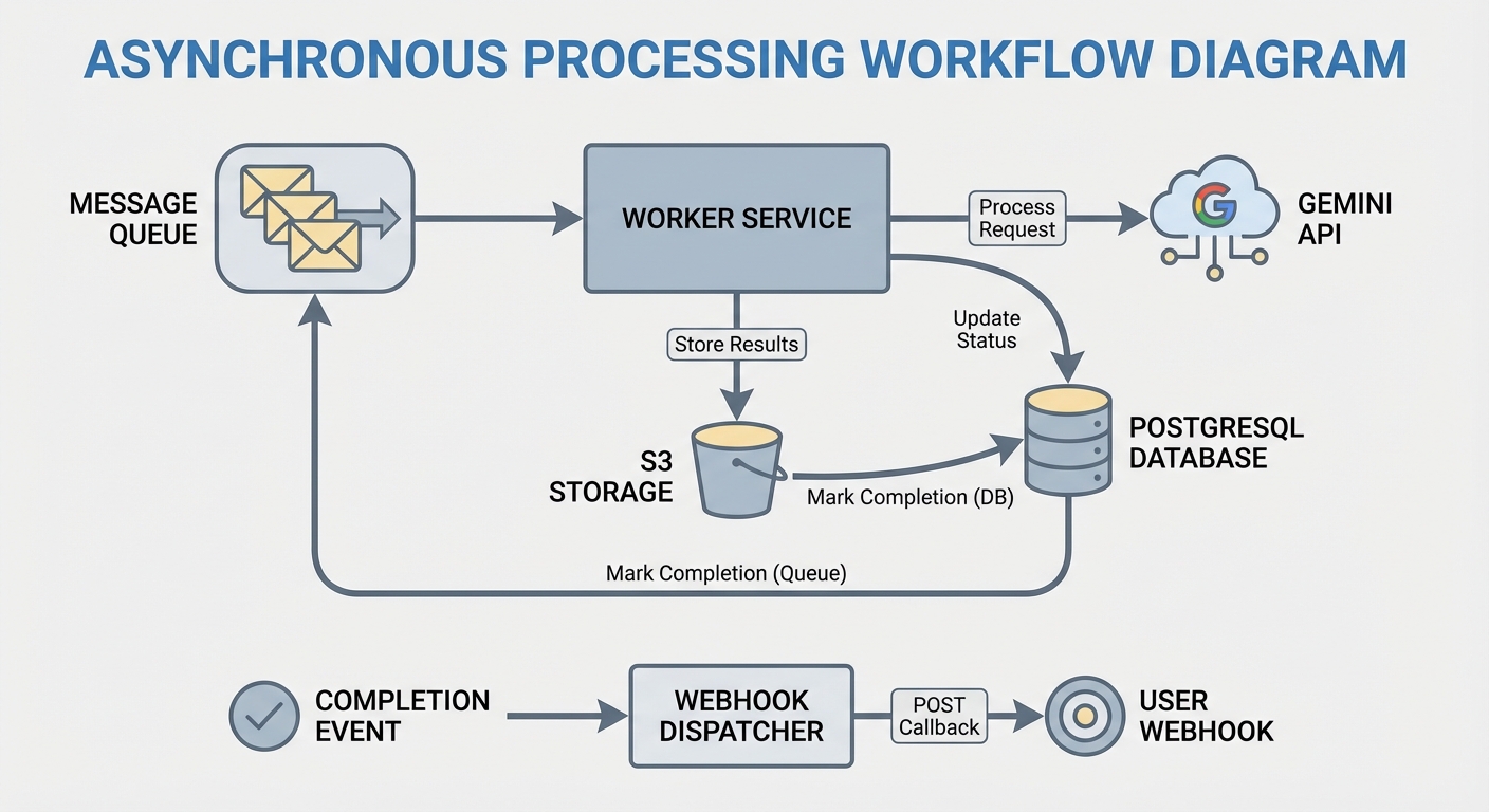 2. Asynchronous Processing The heavy lifting happens in the Processing Layer. The Worker Service consumes the new message from the queue.